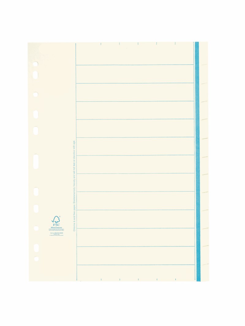 Tillverkas av gultonat 90g kraftpapper som är klor och syrafritt. Flikarna är otryckta. Samtliga register är tillverkade av FSC certifierat papper vilket gör dem till ett bra miljöval. Index 12-flik.
