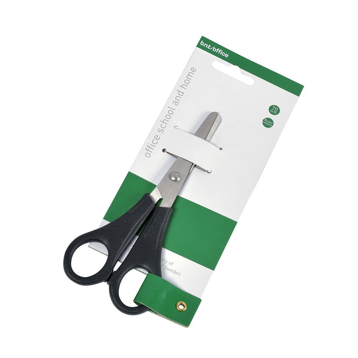 Sax Barn 13 cm Svart. Barnsax med ergonomiskt grepp, rostfria blad och integrerad linjal. Levereras i blisterförpackning. Svart handtag som är utformat för både höger- och vänsterhänta. Bladen är 7 cm långa.