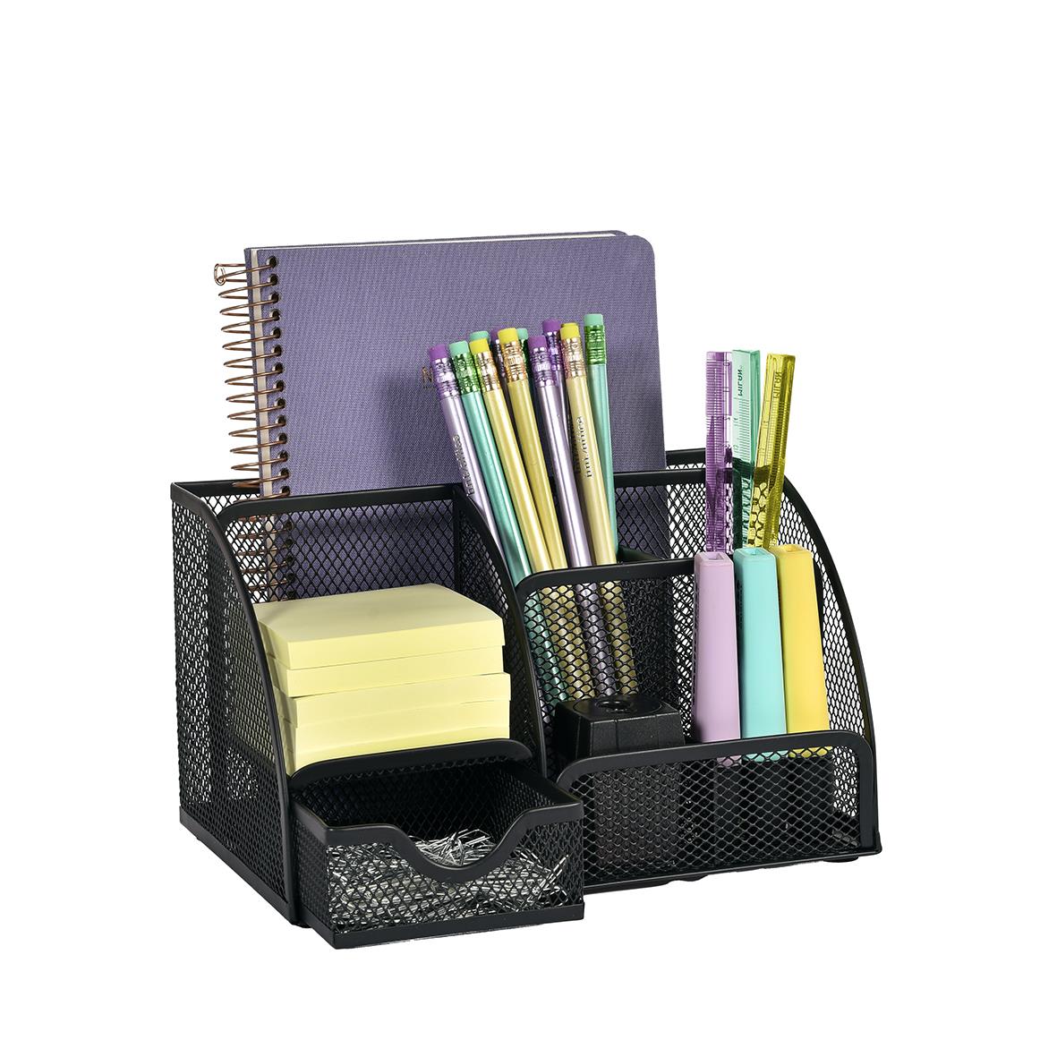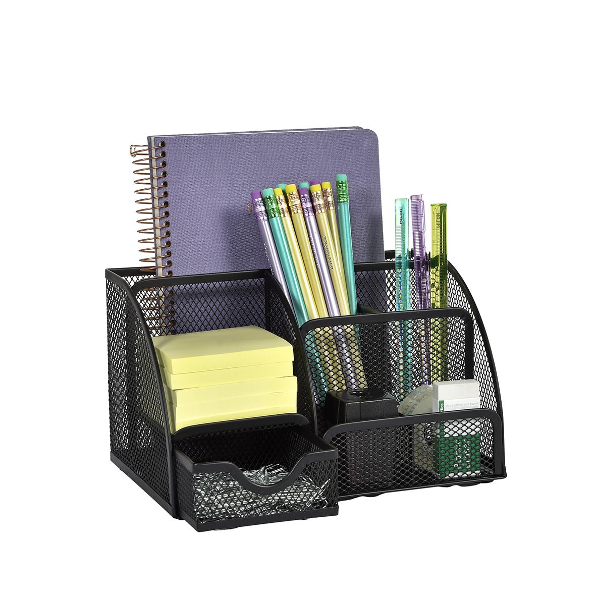 Skrivbordsorganiserare Tråd Svart med flera praktiska fack som rymmer pennor, notiser, anteckningsbok och andra kontorstillbehör. En snygg och smart lösning som hjälper dig att hålla ordning på skrivbordet. Perfekt för både kontoret och hemmakontoret. Måt