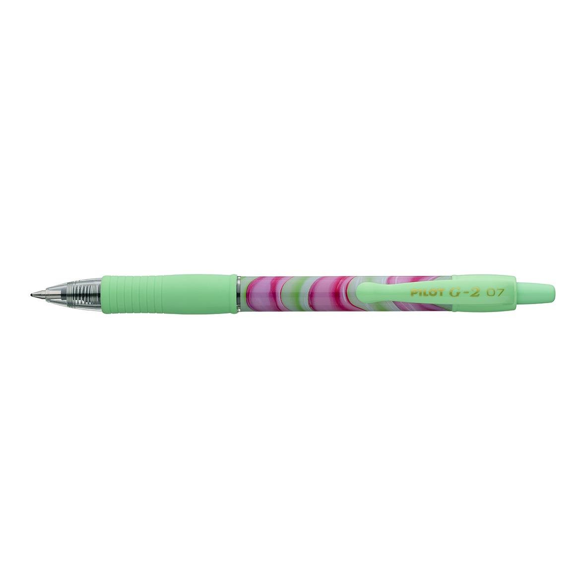 Gelpenna Pilot G2 Flow 0,7 Rosa Blått Bläck. Limited Edition penna med klickmekanism. Gummerat och räfflat fingergrepp. Gelbläckets mjukhet ger pennan en fantastisk skrivkänsla. Skrivlängd 700 m. Dokumentäkta enligt ISO 27668-2