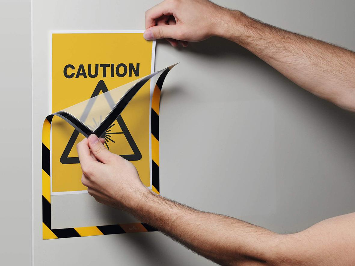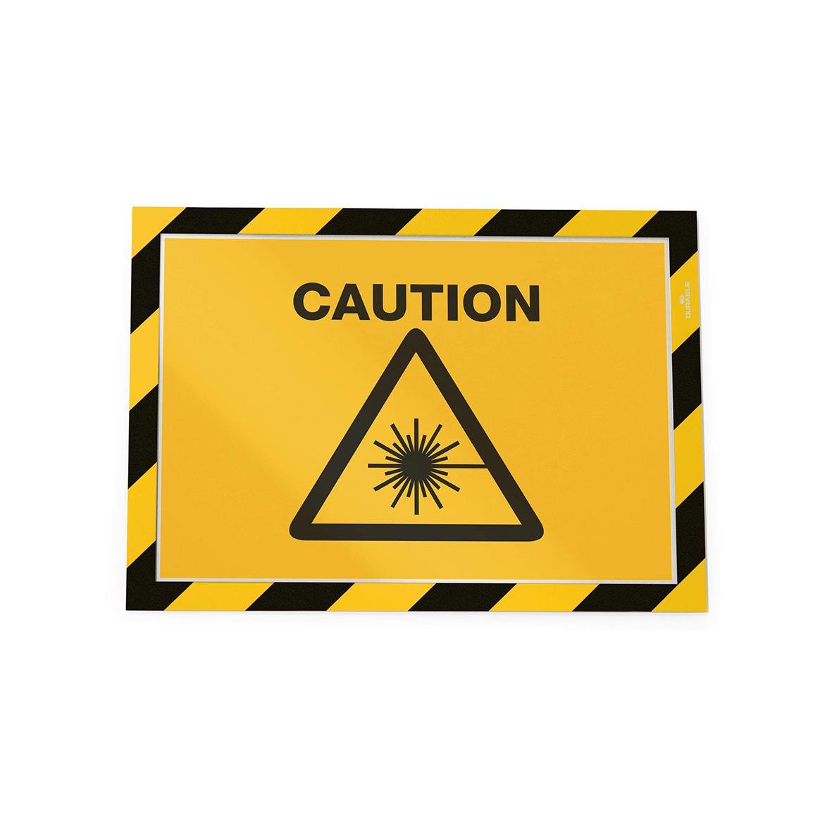 Inforam Durable Duraframe Mag Security Gul/Svart A4. Visa tillfällig eller permanent säkerhetsinformation på ett snabbt, snyggt och professionellt sätt. Placera dokumentet i ramen och fäst den magnetiska kanten mot en metallisk yta – exempelvis whiteboard