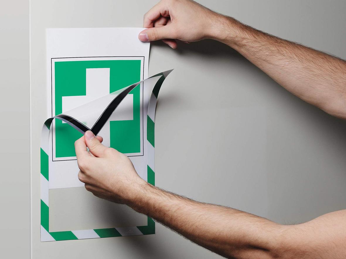 Inforam Durable Duraframe Mag Security Grön/Vit A4. Visa säkerhets- och varningsinformation på ett snabbt, snyggt och professionellt sätt – tillfälligt eller permanent. Placera dokumentet i ramen och fäst den magnetiska kanten mot en metallisk yta, exempe