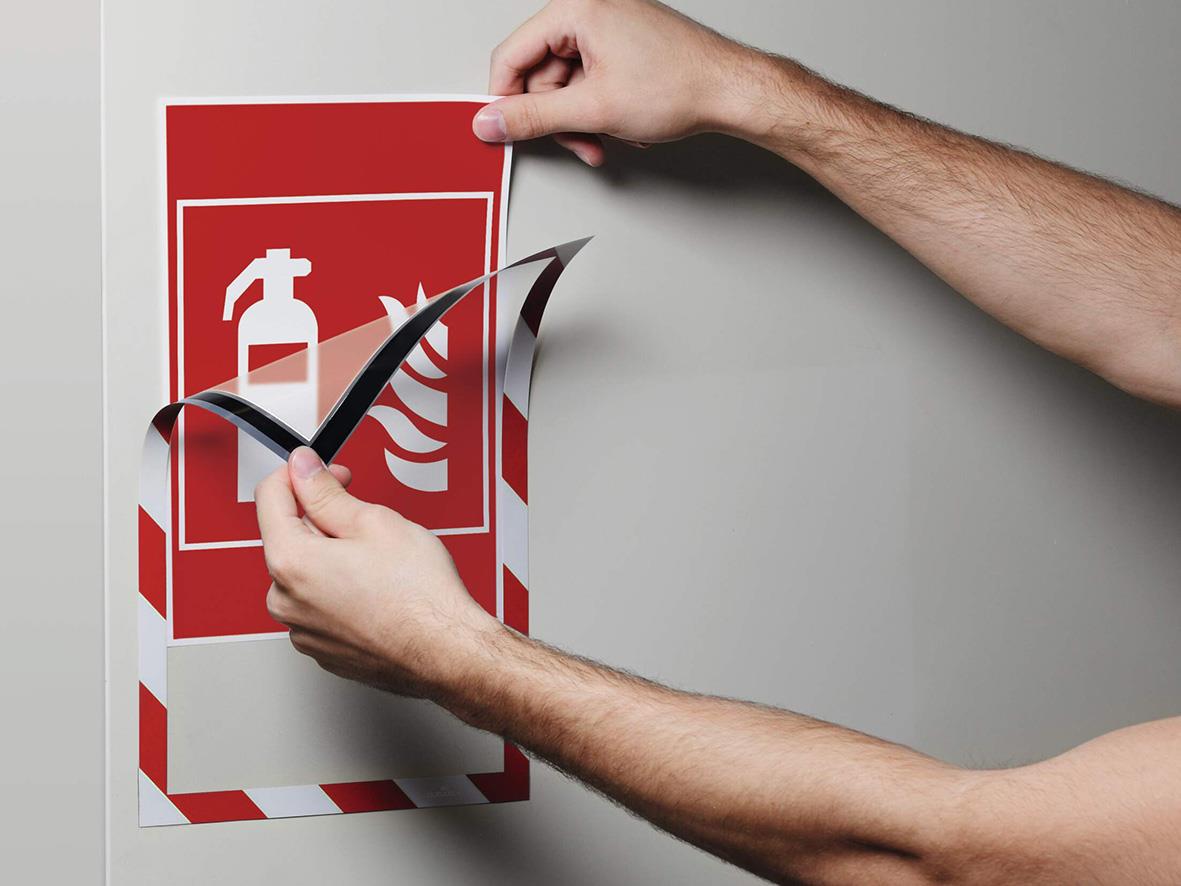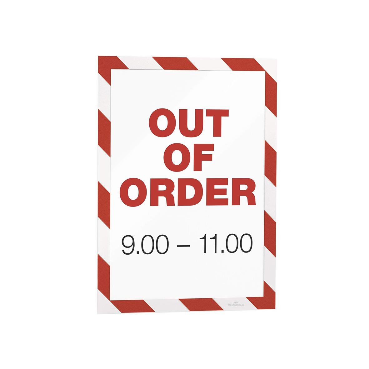 Inforam Durable Duraframe Mag Security Röd/Vit A4. Visa säkerhets- och varningsinformation på ett snabbt, professionellt och stilrent sätt – både tillfälligt och permanent. Placera dokumentet i ramen och fäst den magnetiska kanten mot en metallisk yta, ex