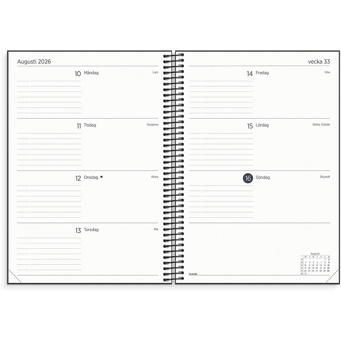Almanacka Burde 1044 Organizer & Notes 2026 Svart