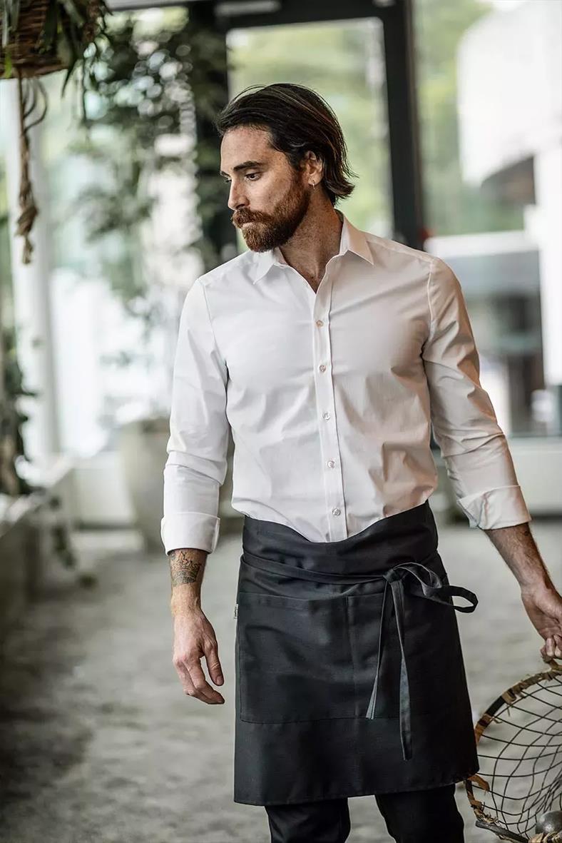 Midjeförkläde Segers 4576 70x45cm Svart S/M. Midjeförkläde i klassisk modell - Dubbelficka mitt fram med nyckelhälla - Hank för upphängning - Slitstark och färghärdig kvalitet - Segers Core Material: 65/35% polyester/bomull- Twill - 245g/m²