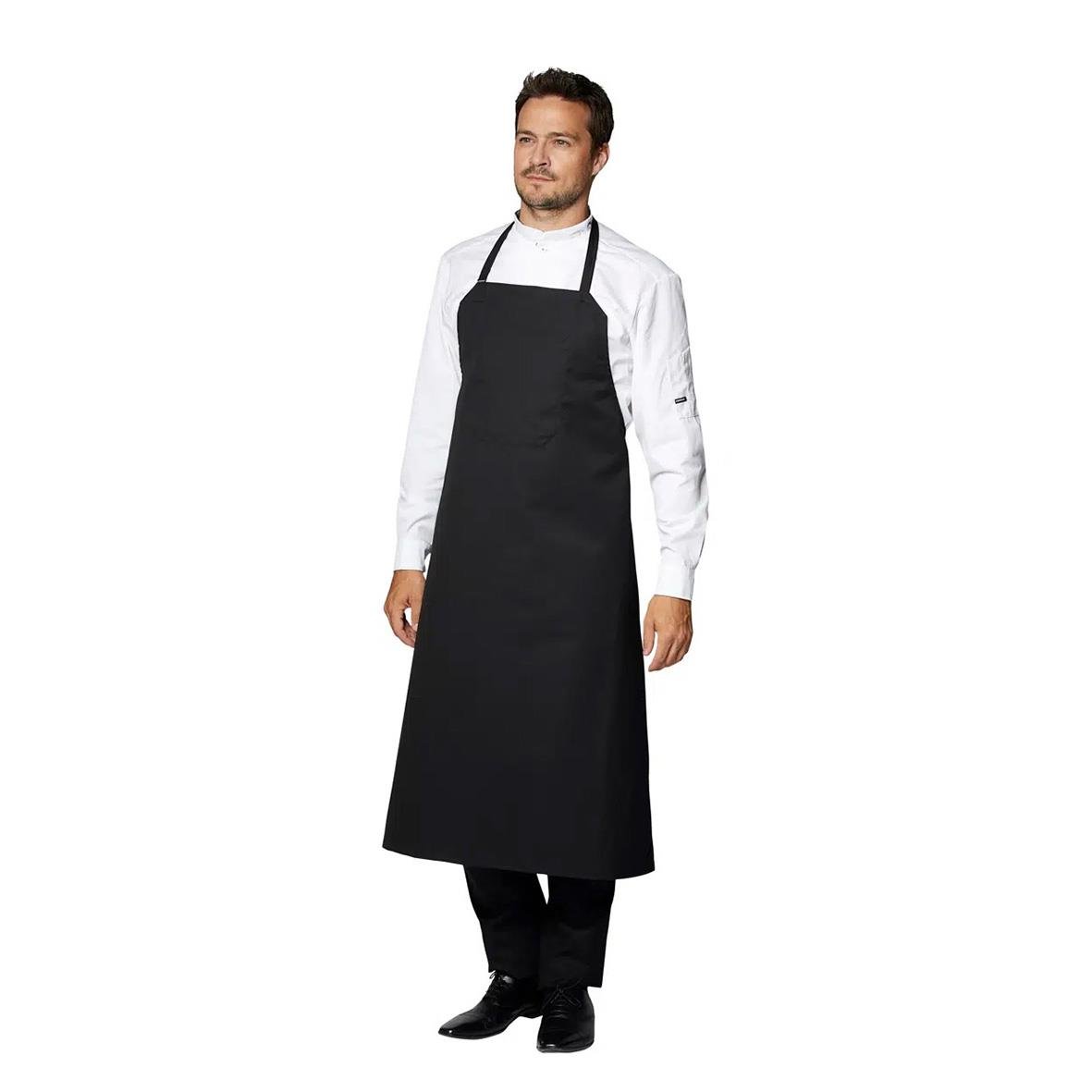Bröstlappsförkläde Kentaur 31502 Svart. - Invändig bröstficka - Ficka int. mål: H: 20 cm x B: 16,5 cm - Justerbart nackband med knapp och knapphål - Knappar som är lämpliga till upprullning - Sydda band - Steamerhenk - B: 90 cm x H: 108 cm 245 g/m2