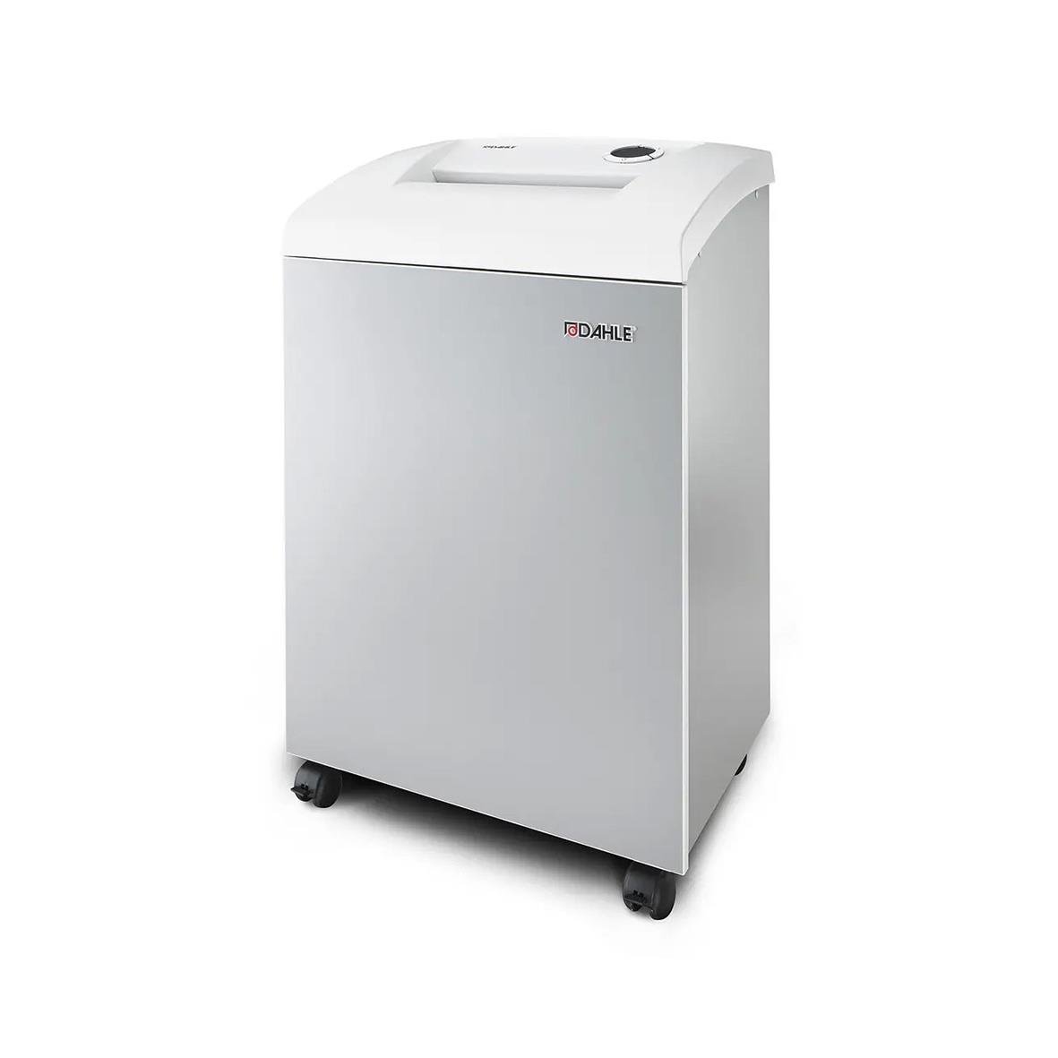 Dokumentförstörare Dahle Team 606 P6. Dokumentförstörare för professionellt bruk • Dörren öppnas brett för enkel tömning av avfallsbehållaren • Intuitiv och användarvänlig kontrollpanel med belysning och ljudsignaler • Automatisk avstängning efter 30 minu