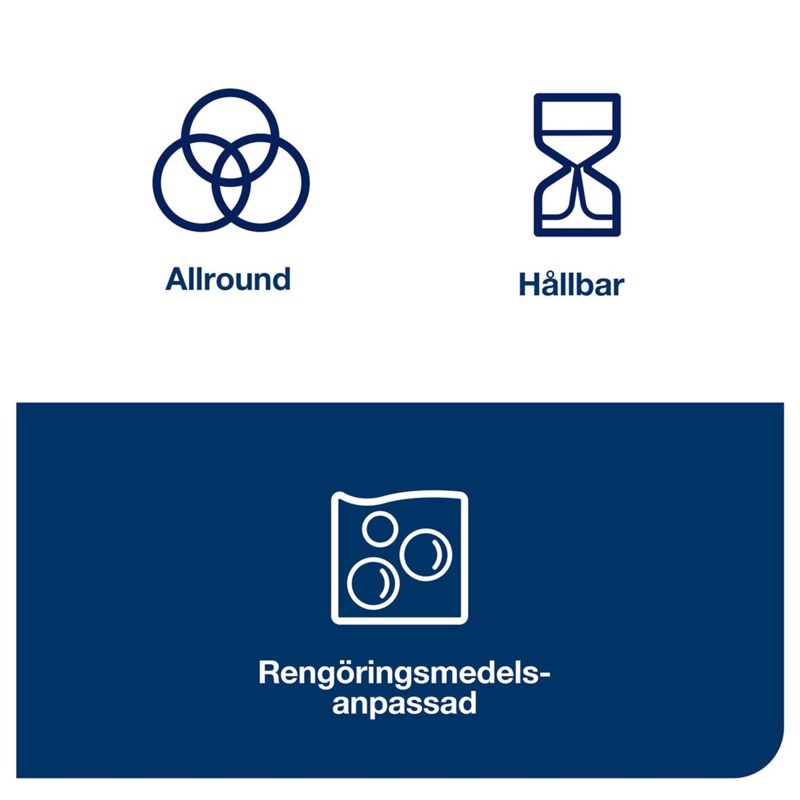 Tork Rengöringsduk W8: Kontinuerligt användande av en duk kan göra så att den går sönder, men våra hållbara och absorberande rengöringsdukar kan användas upprepade gånger, vilket minskar avfall och totalkostnader. Använd de olikfärgade dukarna för olika a