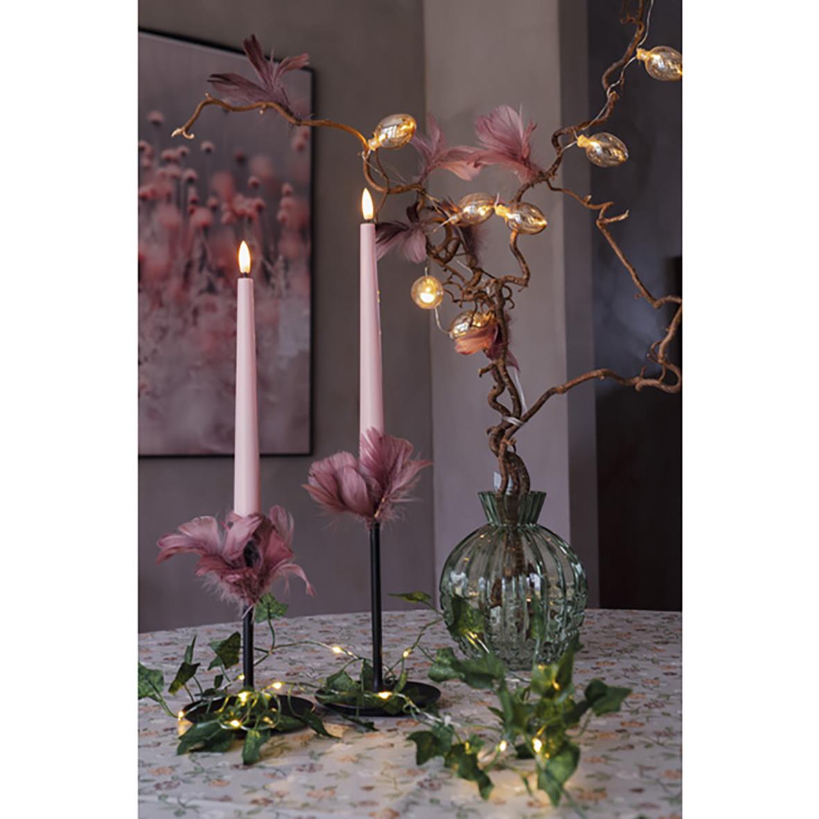 Antikljus Flamme Candy 2-pack Rosa Pastellfärg. Batteriljus Flamme Candy i en rosa pastellfärg. Gjorda i plast med en brinntid på 400h. Den lyser med varmvitt sken. Inbyggd timer 6h/18h. Drivs av 2x2 AA batterier (ingår ej). Höjd 26 cm.