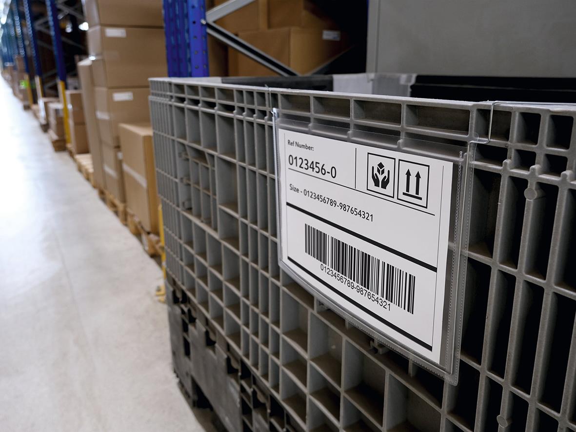 Tydlig och översiktlig märkning av containrar, pallkragar, pallkartonger och gallerväggar förbättrar och effektiviserar arbetsprocessen på lager och i produktionsanläggningar. Plastfickorna av slitstark (170 µ), transparent polypropylen går att läsa med