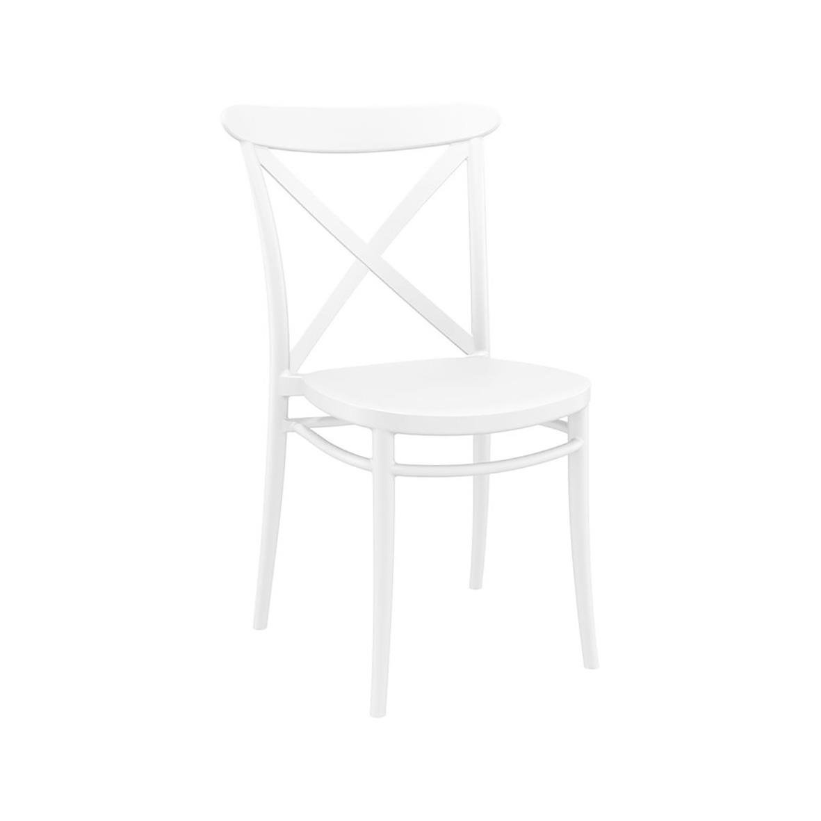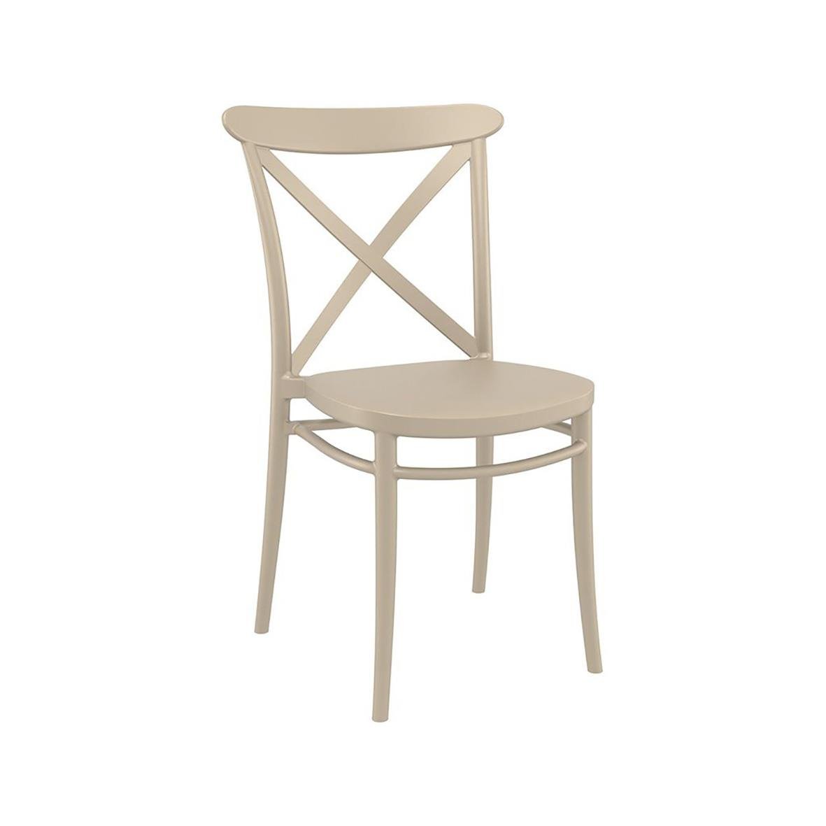 Stol Cross Plast Stapelbar Olivgrön är en stapelbar och modern stol tillverkad i ett enda stycke genom avancerad air molding-teknik. Den är gjord av UV-stabiliserad polypropylen förstärkt med glasfiber, vilket ger hög hållbarhet, låg vikt och god motstånd