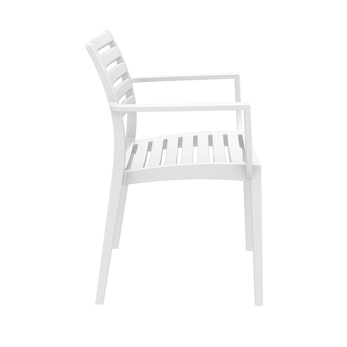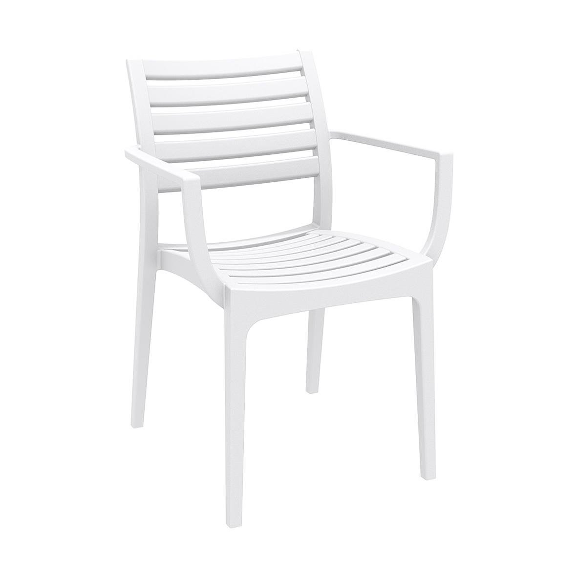 Stol Artemis Stapelbar med Armstöd Vit kombinerar modern och klassisk design i en stapelbar stol med armstöd, framtagen för både inomhus- och utomhusbruk. Målet med stolen var att skapa en högkvalitativ och lättmöblerad stol som fungerar i de flesta miljö