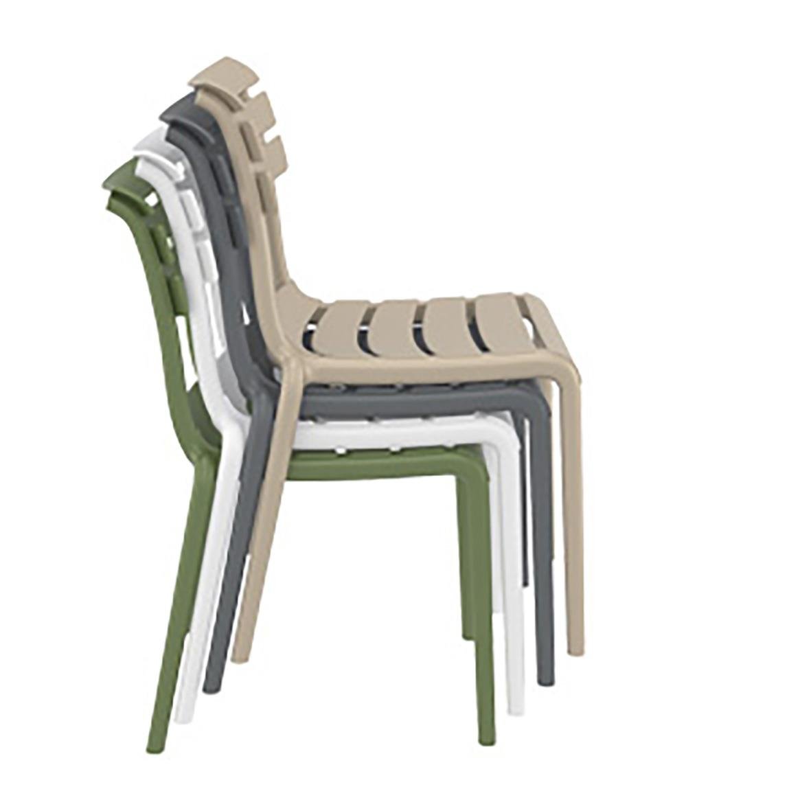 Stol Helen Stapelbar Taupe är en modern och tålig stol tillverkad i ett stycke med air molding-teknik. Den är gjord av UV-stabiliserad polypropylen förstärkt med glasfiber och finns i neutrala toner, vilket gör den lätt att möblera med i många olika miljö