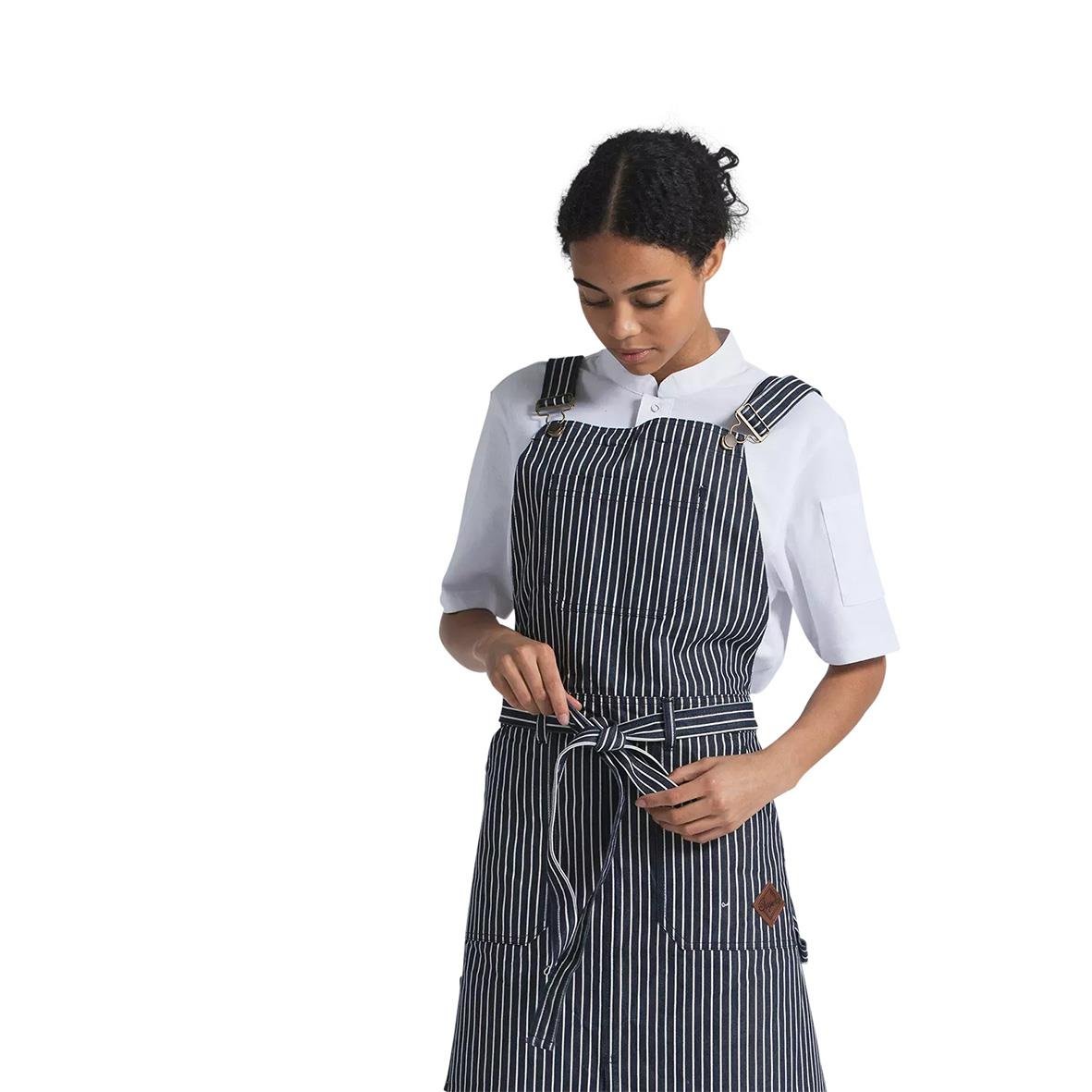 Snickarförkläde Segers 4092 72x98 Mörkblå one size. Bröstlappsförkläde i snickarbyxstil. Lite kraftigare bröstlappsförkläde med många användbara fickor och detaljer. Slitstarkt tyg och markerade stickningar. Slits fram för bra passform. Kors i ryggen ge