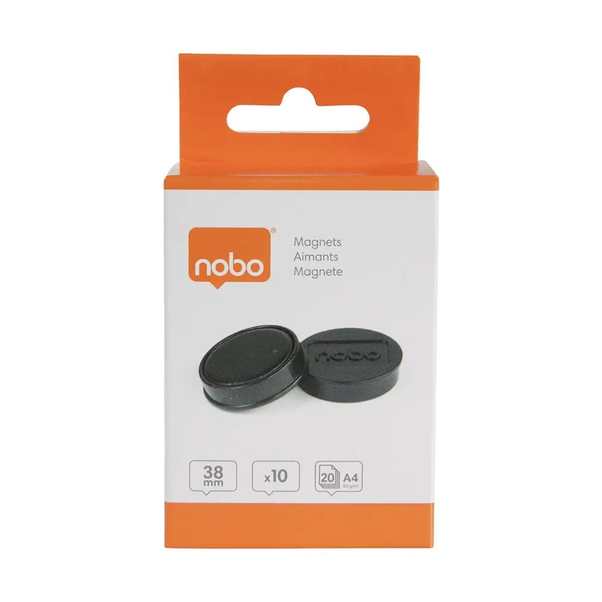 Magnet Nobo 38 mm Svart. Runda magneter är det perfekta verktyget för brainstorming-sessioner, när man vill visa och visualisera idéer på magnetiska whiteboards och glastavlor. De passar även utmärkt att använda som kylskåpsmagneter för att fästa påminnel