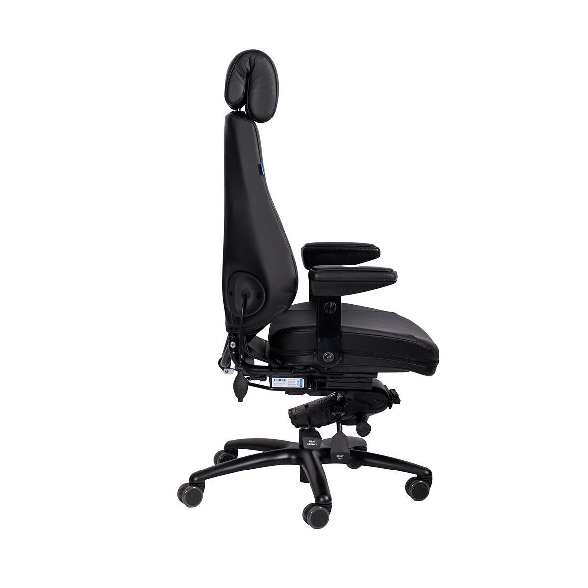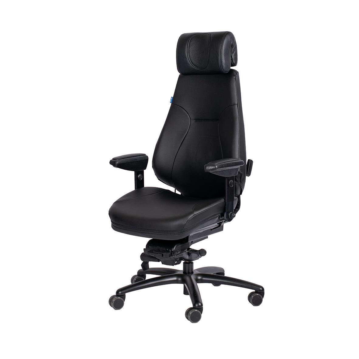 Kontorsstol Be-Ge Frapett 852 24H Konstläder Svart. Extra kraftig 24H-modell med bred sits och hög rygg som ger komfort även under de längsta arbetspassen. Separat ryggvinkel och stötdämpad rygglutning gör att stolen följer dina rörelser för en aktiv och