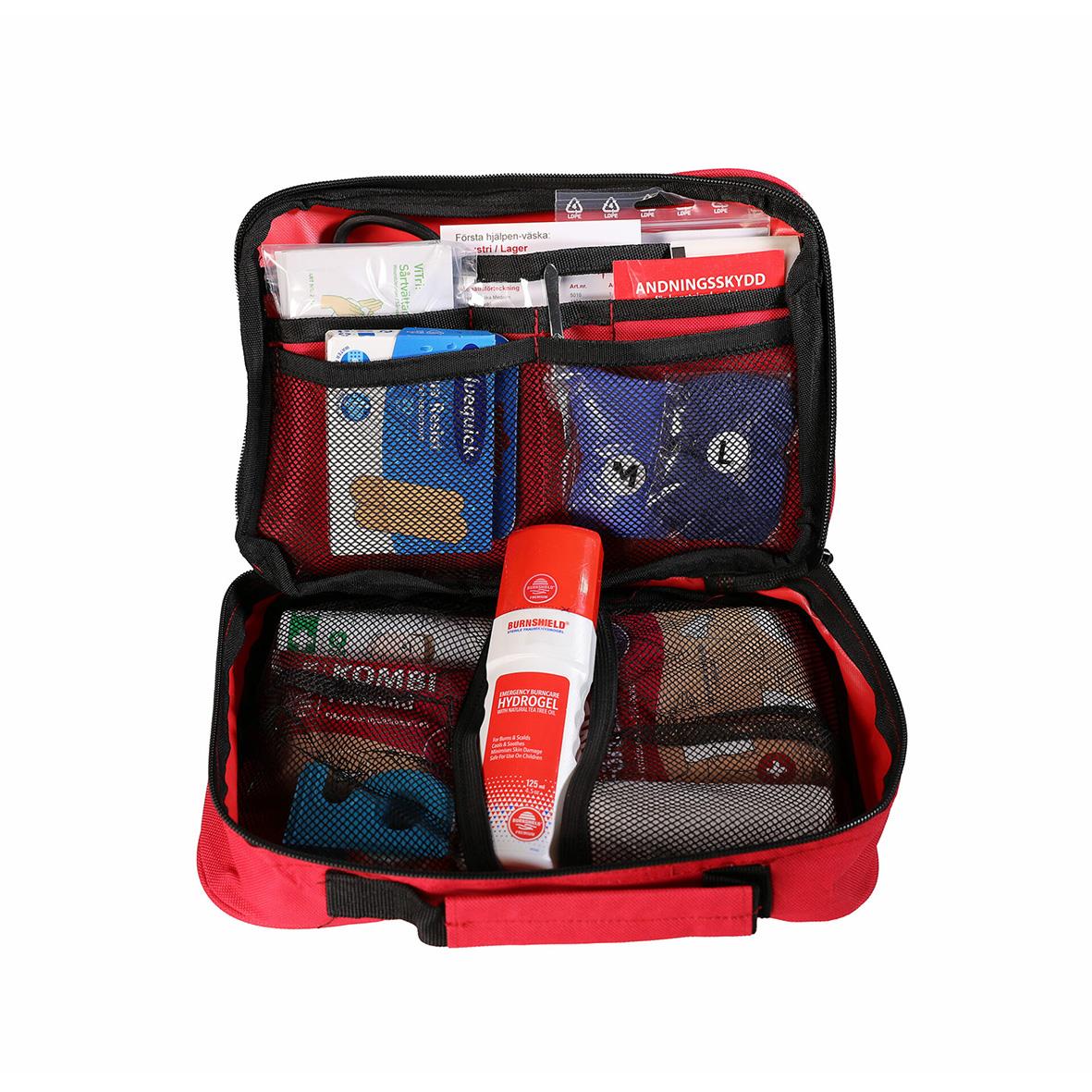 Första Hjälpen ProAid Väska Industri & Lager. Första hjälpen-väska Industri & Lager passar för en arbetsmiljö med viss risk som heta arbeten, bygg, anläggning och industri. Med den här förbandsväskan har du en bra beredskap för bland annat: • Stukade le