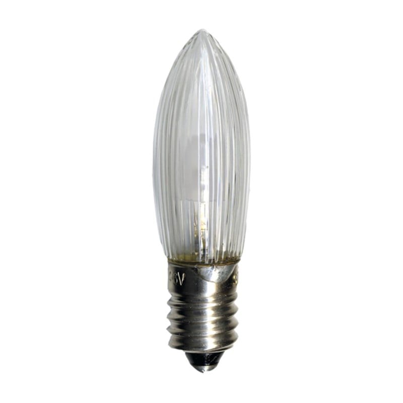 Reservlampa Universal LED 0,2W Varmvit Klar. 7-pack reservlampor Universal LED. Lamporna har klart glas och E10 sockel, 10-55V. Denna produkt passar till ljusstakar med 4-25 lampor och stickkontakt. För inomhusbruk.