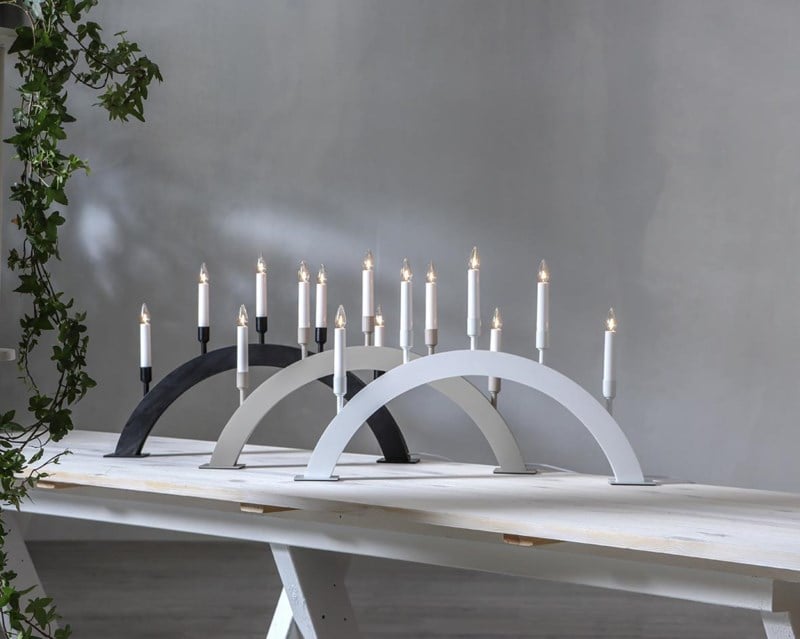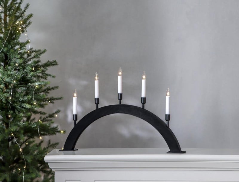 En väldigt fin och stämningsfull adventsljusstake i bågform. Svartbetsad träbas i form av en båge med upphöjda ljuskoppar, ger ett elegant och enkel uttryck till både hemmet och den offentliga miljön. Sprider ett behagligt ljus med sina 5 ljuskällor.