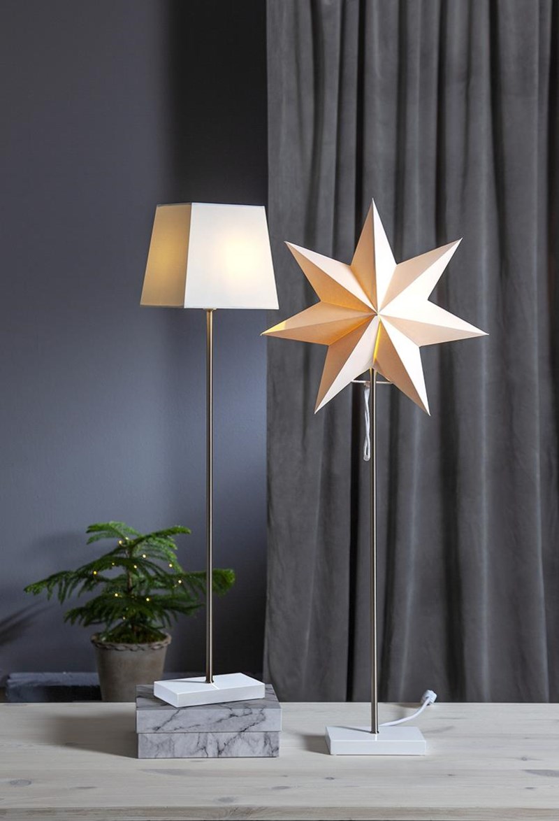 Lampfot (1 st) med en vit stjärna, inklusive en vit lampskärm. Byt till vanliga lampskärmen när julen är över. Mått B x H x D: 34 x 82 x 14 cm. Ljuskälla ingår ej.
