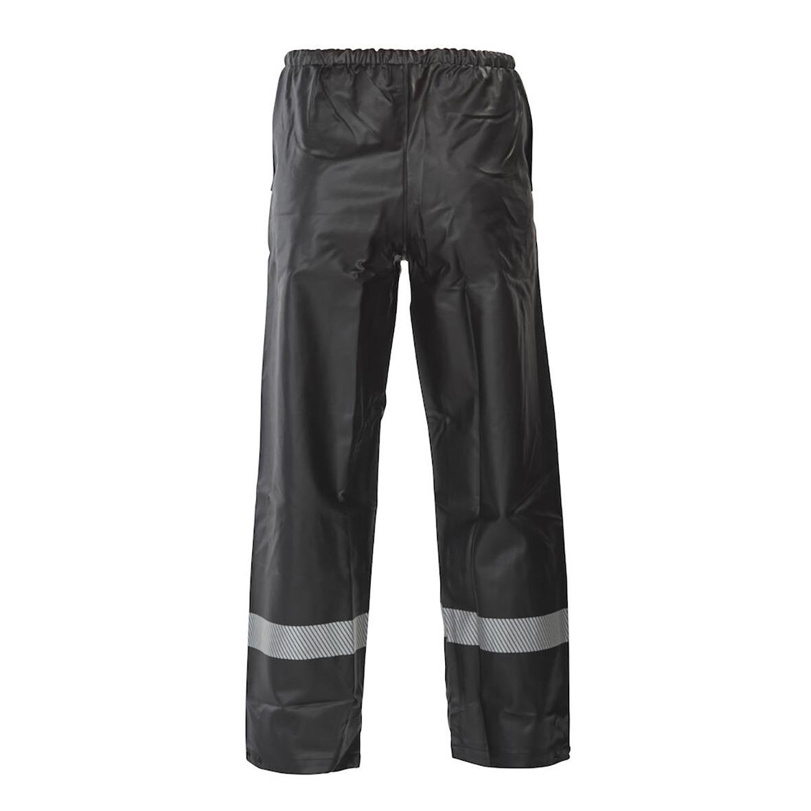 Regnbyxa Projob 4530 Svart S Regnbyxa med sydda och svetsade sömmar. Resår och snodd i midja. Sid?ckor med lock och ?ckpåsar i mesh för ventilation. Re?ex i nederkant av benen. Reglerbar vidd i benslut med tryckknapp. Material - 58% PVC, 27% polyester,