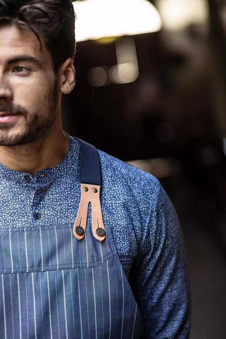 Resårhängsle Segers 0568 Marin L/XL. Justerbara resårhängslen. S/M (ca 54-80 cm), L/XL (ca 68-108 cm). Passar förkläde 4078 - Resår/ Läder - Hängslen som fästs med skinntoppar och metallknappar - Plockas ur vid tvätt - Resår-kvalitet