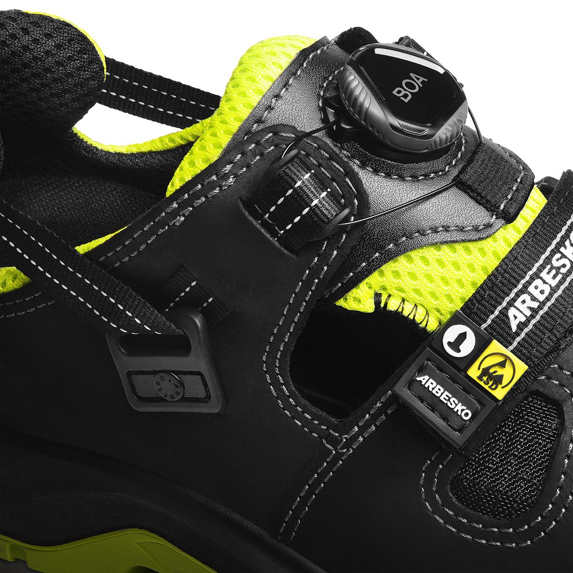 Skyddssko Arbesko 929 Umeå Stl 42. Umeå 929 är en extra luftig skyddssko utrustad med den unika kombinationen av hälrem och dubbel knäppning med kardborre och BOA® Fit System för bättre passform och enkel av- och påtagning. Skons luftiga design gör den t