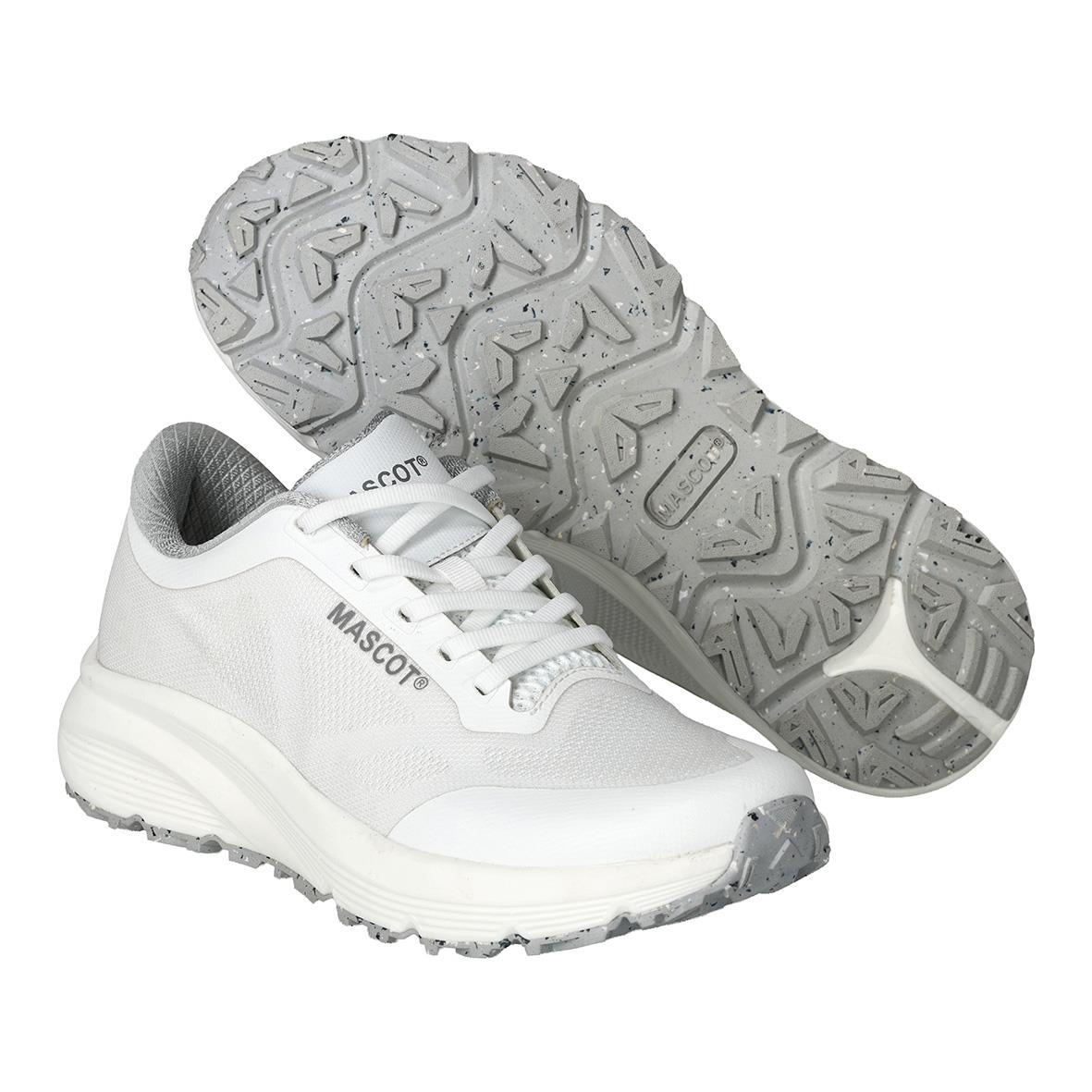 Yrkessko Mascot F2000-906 Vit 47. • Lätta och bekväma sneakers utan säkerhetsanordningar. • Yttersula i gummi ger ett bra grepp. • Stötdämpande och ergonomiskt stödjande innersula ger en optimal komfort.