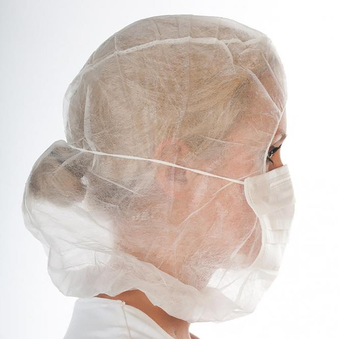 Huva AstroCap Med munskydd Vit 100/fp. Hår- och munskydd i ett, i polypropylen non-woven.