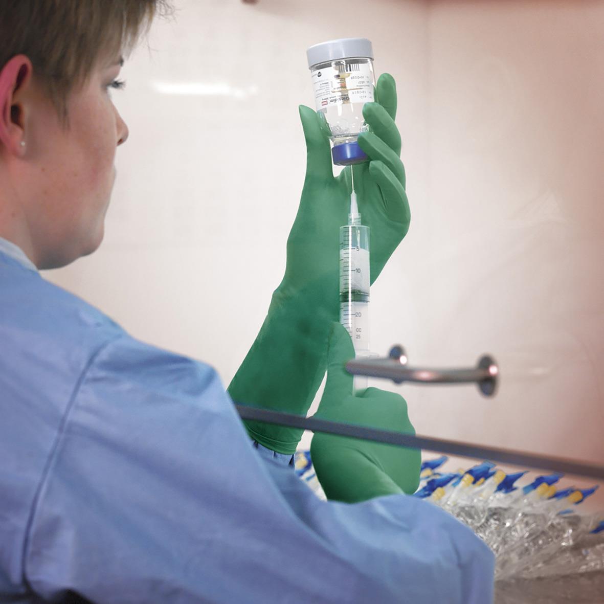 Engångshandske neopren TouchNTuff Dermashield 73-701 stl 7. Steril engångshandske av neopren. DermaShield® har naturgummihandskens komfort och flexibilitet men tål kemikalier bättre tack vare neoprenblandningen. Längd 31 cm och den nya rullade kanten på