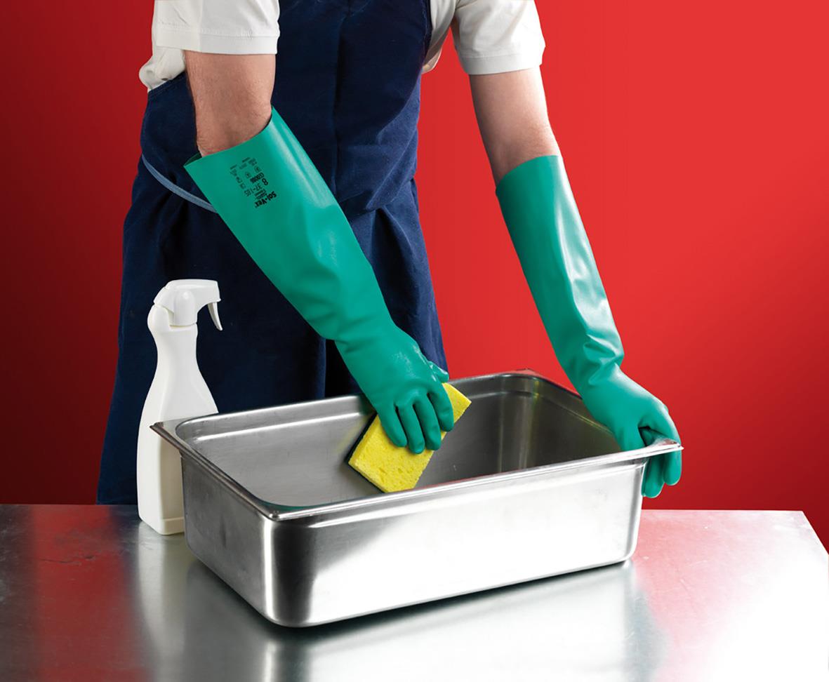 Kemskyddshandske Ansell AlphaTex Solvex 37-185 10. Kraftig och extra lång kemskyddshandske i nitril för en lång rad applikationer. Ansell Sol-Vex 37-185 passar bra i våta och torra arbetsmiljöer där beständighet mot kemikalier är avgörande. Idealisk för