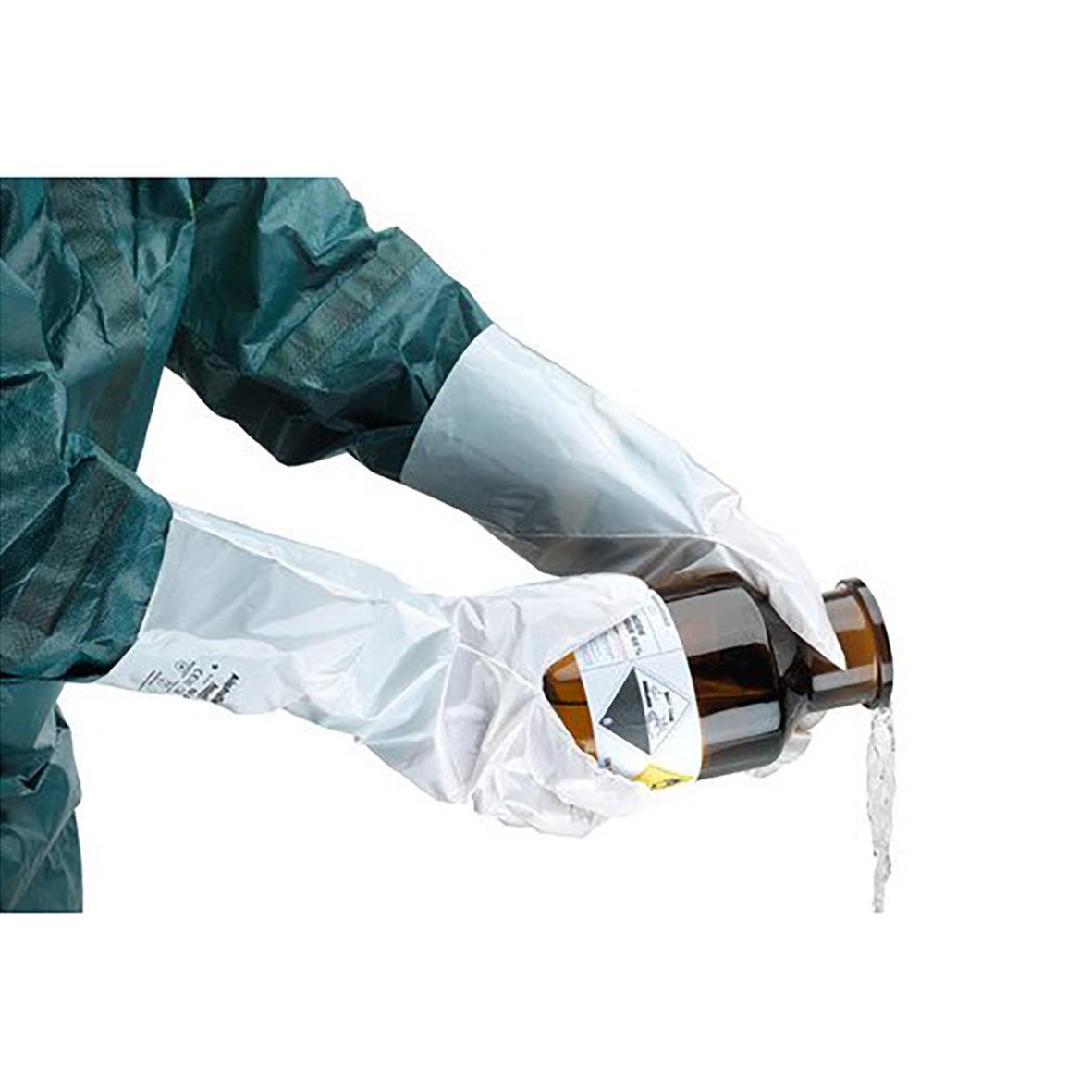 Kemskyddshandske Ansell AlphaTec Barrier 02-100 Vit 7 Mångsidig handske som ingår i olika kit för spillsanering och räddningsinsatser och låter användarna tryggt utföra sitt arbete. Kemskyddshandske som skyddar mot de flesta kemikalier. Inget annat mat