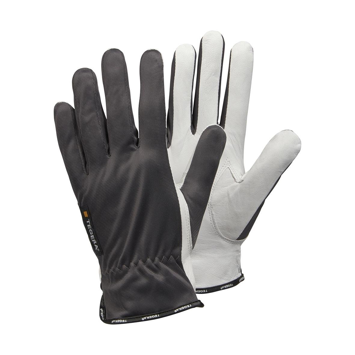 Montagehandske Tegera 114 Getnarv 10. Läderhandske med bra fingertoppskänsla för olika typer av finmonteringsarbeten. Tunn getnarv av högsta kvalitet i handflatan ger extremt bra precision och fingertoppskänsla. Ovanhand i nylon för god andningsförmåga.
