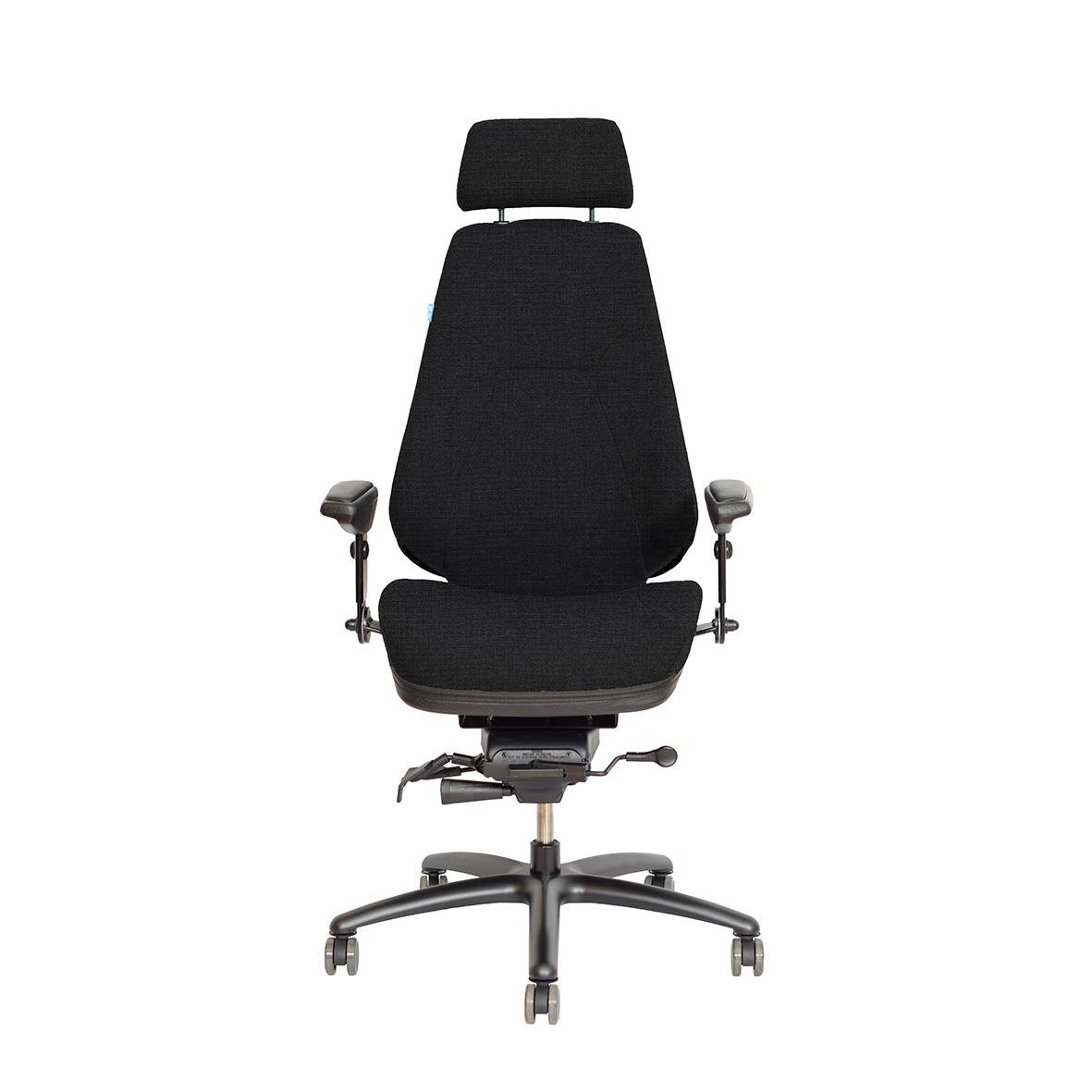 Kontorsstol Be-Ge Frapett 852 24H Tyg Svart. Extra kraftig 24H-modell med bred sits och hög rygg som ger komfort även under de längsta arbetspassen. Separat ryggvinkel och stötdämpad rygglutning gör att stolen följer dina rörelser för en aktiv och ergonom
